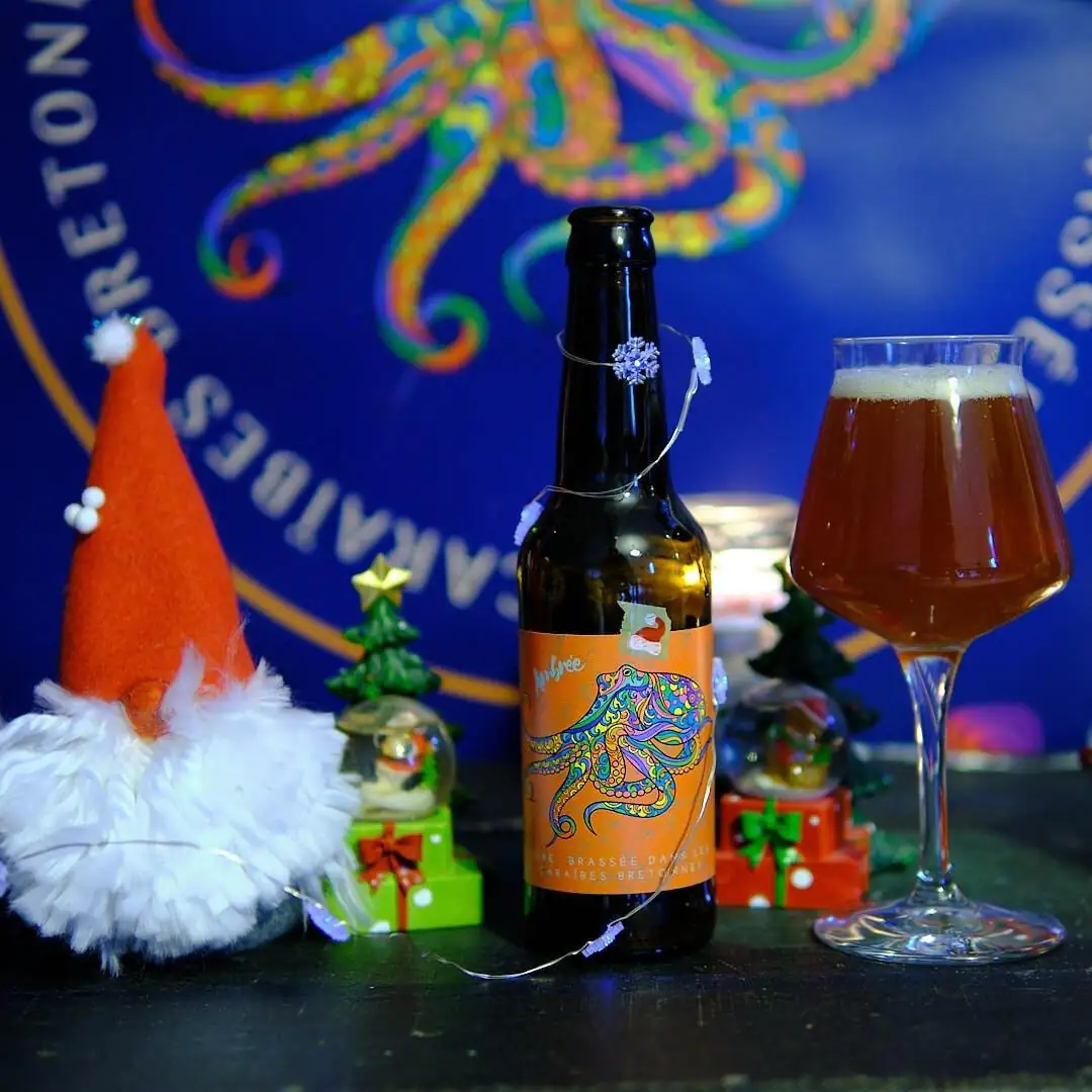 La Pieuvre est fière de vous présenter sa bière de Noël : une bière ambrée aromatisée au citron Yuzu (de Damien du potager de Kerrun) , au gingembre, au clou de girofle et à la cannelle !